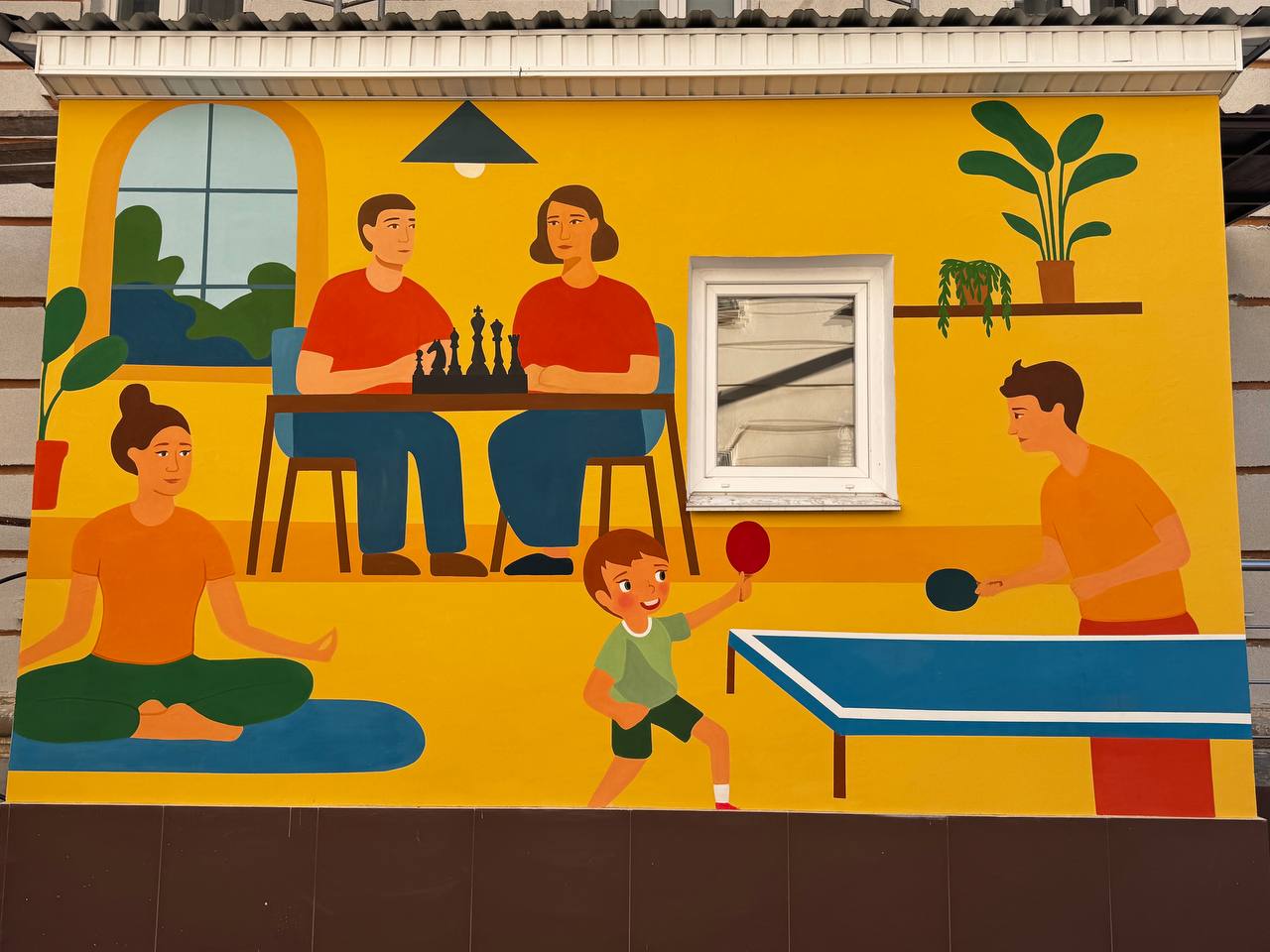 Как рассказали посетители соседского центра «вМесте» на улице 50-летия Победы, 32, стену рядом художники украсили картиной, отображающей всю многогранность занятий, которыми может заниматься каждый посетитель в центре.